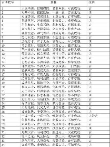 查表對照:根據(jù)命局數(shù)在《八十一數(shù)吉兇對照表》中查找對應的吉兇結(jié)果。