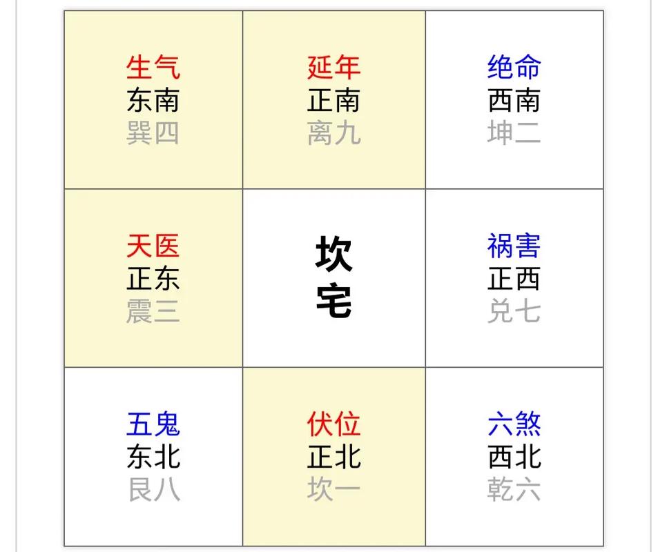 東四命卦宜開震、巽、離三方門;西四命卦宜開坤、兌兩方門。