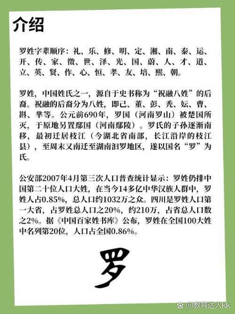 羅姓五行屬水,具有聰慧、適應(yīng)能力強、感情細(xì)膩等特質(zhì)。在事業(yè)上,適合從事與水相關(guān)的職業(yè),具有商業(yè)頭腦。感情方面,異性緣佳,注重感情,適宜與屬虎、屬鼠、屬豬之人結(jié)緣。健康方面,體質(zhì)較弱,宜注重保暖,多食用補益食品。