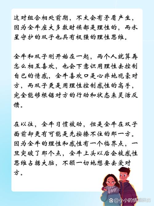 金牛座和雙子座的愛(ài)情觀和婚姻觀存在一定的差異,但并非完全不相符。以下是對(duì)這兩個(gè)星座在愛(ài)情觀和婚姻觀方面的詳細(xì)分析: