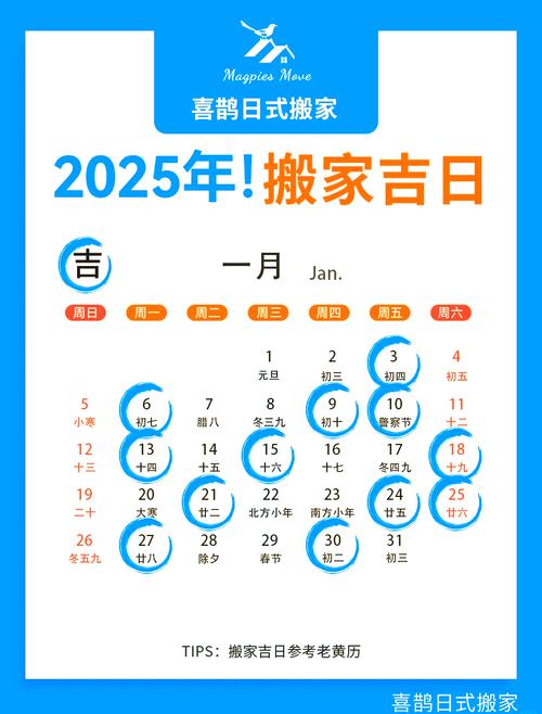 2. 2025年1月5日,星期一,農(nóng)歷十二月初三,宜搬家、喬遷。