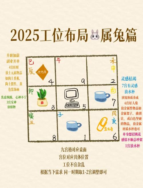 正東方位:屬兔人的婚姻宮位在2025年位于正東方,九紫右弼星飛臨此方位,有利于婚姻和感情的發(fā)展。在正東方位擺放一些喜慶的物品,如紅色裝飾物、中國結(jié)等,可以進一步增強婚姻運勢。