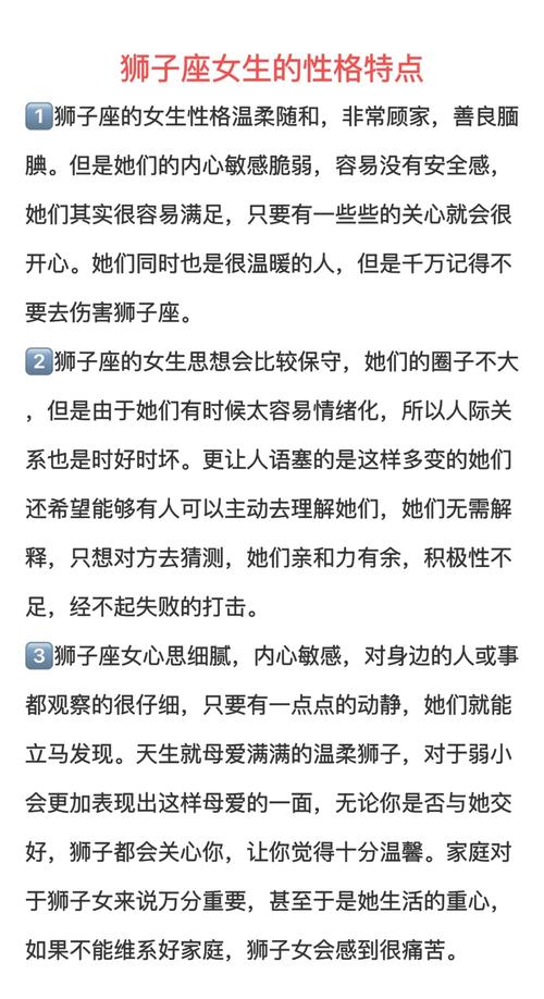 5. 熱愛挑戰(zhàn)和競爭:她們喜歡參加各種社交活動和派對,通過自己的魅力和魄力,能夠輕松地獲得他人的認(rèn)可和贊賞。獅子女生通常是社交圈中的領(lǐng)頭羊,她們的社交經(jīng)驗(yàn)豐富,能夠在各種場合中游刃有余地展現(xiàn)自己的魅力。