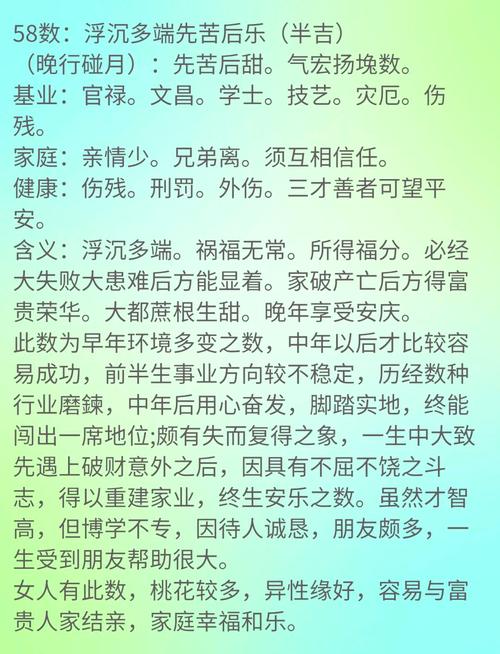 不同的數(shù)理對(duì)應(yīng)著不同的吉兇含義,例如,某些數(shù)字被認(rèn)為是吉祥的,代表著事業(yè)順利、財(cái)運(yùn)亨通、健康長(zhǎng)壽等,而某些數(shù)字則被認(rèn)為是兇險(xiǎn)的,代表著坎坷波折、疾病纏身、人際關(guān)系緊張等。