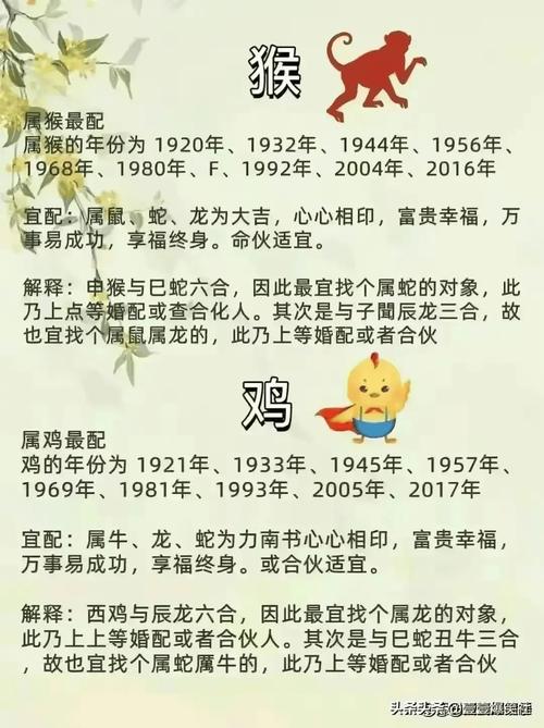 屬猴人的六合生肖為龍和鼠,因此與屬龍或?qū)偈蟮娜私Y(jié)婚最相配。32歲這一年恰好是龍年,因此對(duì)于1992年屬猴人來(lái)說(shuō),2023年是結(jié)婚的好時(shí)機(jī)。