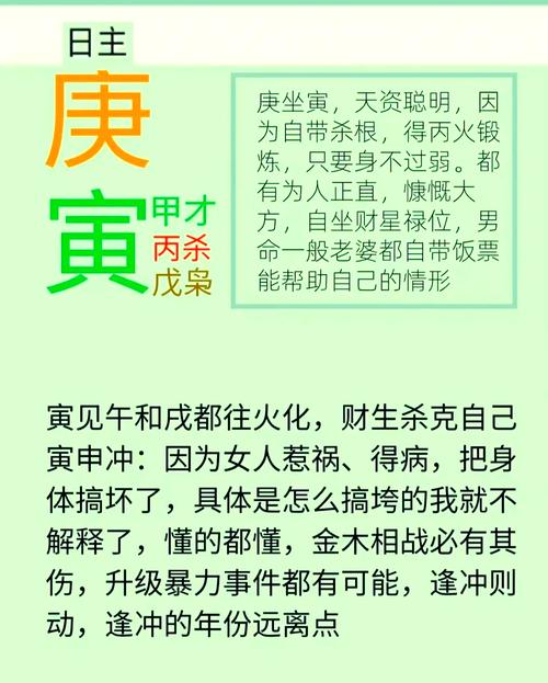 庚寅日出生的人,性格開朗,熱情大方,喜歡交朋友。他們很會說話,能夠把人哄得很開心。庚寅日出生的人,很會享受生活,懂得品味生活中的樂趣。他們喜歡旅行,喜歡美食,喜歡音樂,喜歡藝術。