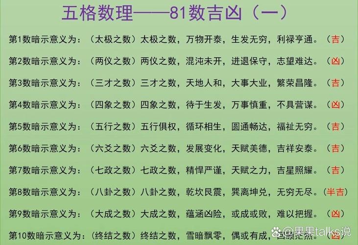 數(shù)字81在多個(gè)文化和應(yīng)用領(lǐng)域中具有不同的吉兇含義。以下是對(duì)數(shù)字81吉兇表的詳細(xì)解析,包括其在文化、姓名學(xué)、數(shù)字能量學(xué)等方面的解釋。
