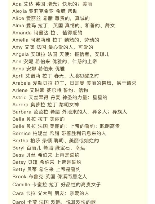為新生女嬰起一個獨特而又充滿魅力的名字,是父母賦予孩子的第一份珍貴禮物。歐美名字不僅音韻優(yōu)美,而且通常蘊含著豐富的文化底蘊和美好的寓意。本篇文章將為您精心挑選一系列可愛迷人的歐美女孩名字,并提供多種配對方案,助您為您的寶貝女兒找到最完美的名字組合。