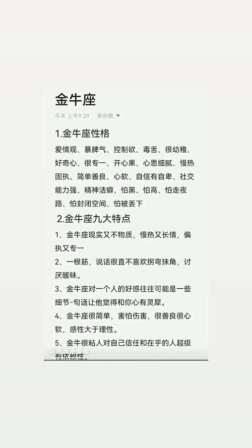 1. 性格特質:金牛座的人通常誠實、內向,大多數時候溝通不好。他們真誠坦率,容易相信他人,這使得他們容易被一些帶有目的性的人利用。