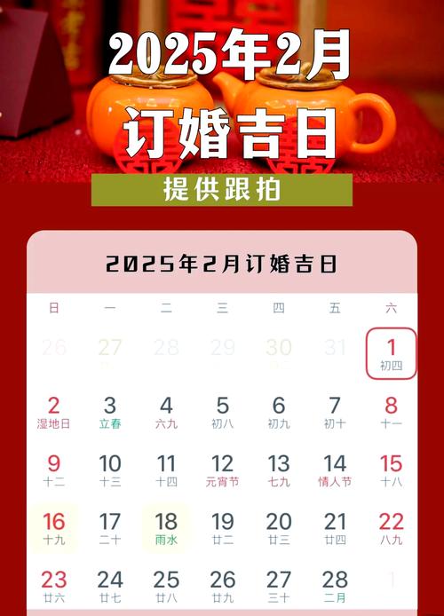 選擇2025年1月的婚期吉日不僅是對傳統(tǒng)文化的傳承,也是對新人美好未來的祝愿。以下是根據(jù)傳統(tǒng)黃歷、五行相生、特殊寓意等因素挑選出的適合結(jié)婚的吉日。