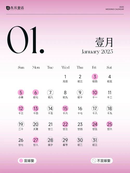 1月3日、1月5日、1月10日、1月12日、1月13日、1月15日、1月21日、1月22日、1月24日、1月25日、1月27日。一月處于新年伊始,節(jié)日氛圍濃厚,適合喜歡在冬季感受浪漫與溫馨的新人。