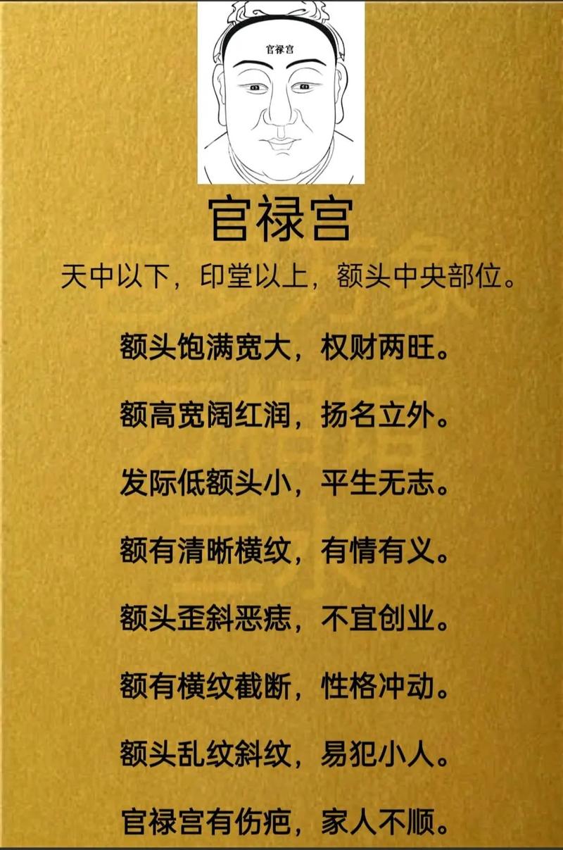 額頭飽滿:常被視為智慧和前途的象征,認(rèn)為這樣的人有較好的官運(yùn)。