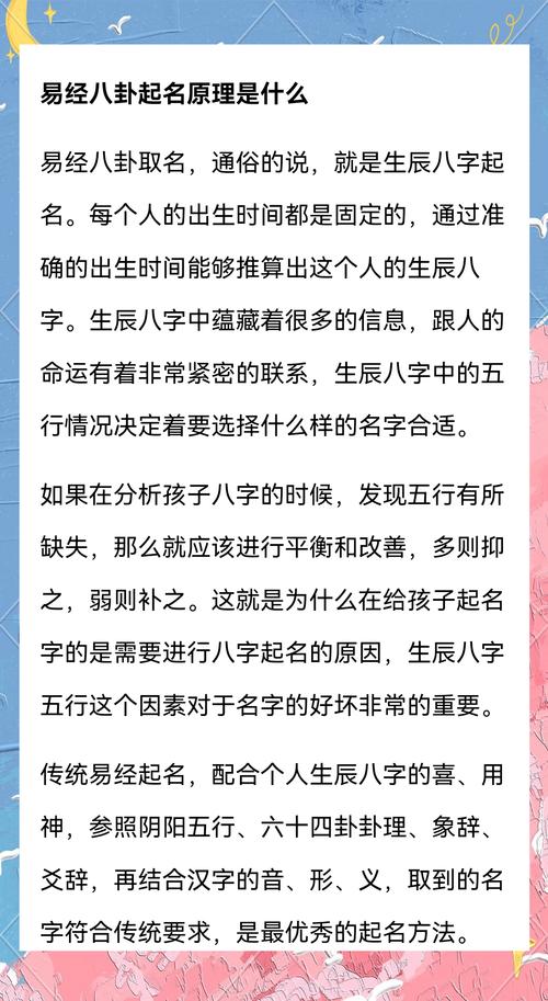 周易八字取名的核心理論是五行生克制化,以及喜用神的選取。