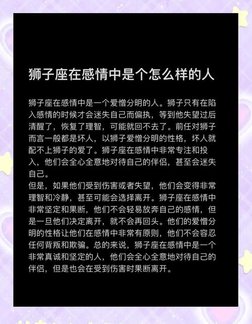 3. 信任與理解:獅子座女生信任心愛的人,愿意理解對方,支持對方追求夢想。她們會放下自己的驕傲和面子,為對方的成長和幸福做出犧牲。