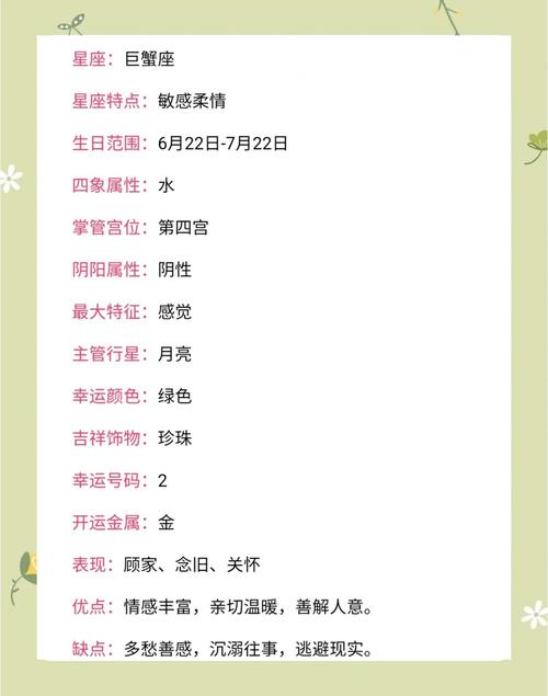 巨蟹座的出生日期范圍是從6月21日到7月22日。因此,首先需要確定您的出生月份是否落在這一范圍內(nèi)。