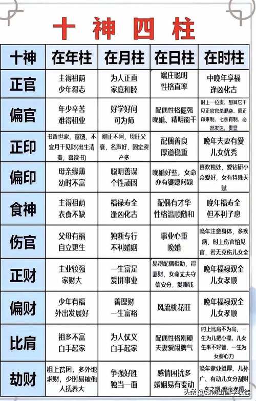 日支:代表配偶、家庭,比肩在日支可能性格剛強(qiáng)、固執(zhí),劫財(cái)在日支則可能精明、自我。