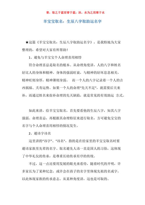 羊年出生的寶寶,其八字特點(diǎn)與起名策略需要結(jié)合天干地支的五行屬性、陰陽(yáng)平衡、生克制化以及漢字本身的意義、音韻、字形等多方面因素進(jìn)行綜合考量。一個(gè)好的名字不僅要符合八字命理,補(bǔ)益不足,還要寓意美好,朗朗上口,寄托父母對(duì)孩子未來(lái)的期望。本文將從八字命理基礎(chǔ)、羊年寶寶八字特點(diǎn)分析、起名原則與策略、以及常用字選擇等方面,深入探討羊年寶寶的起名之道。