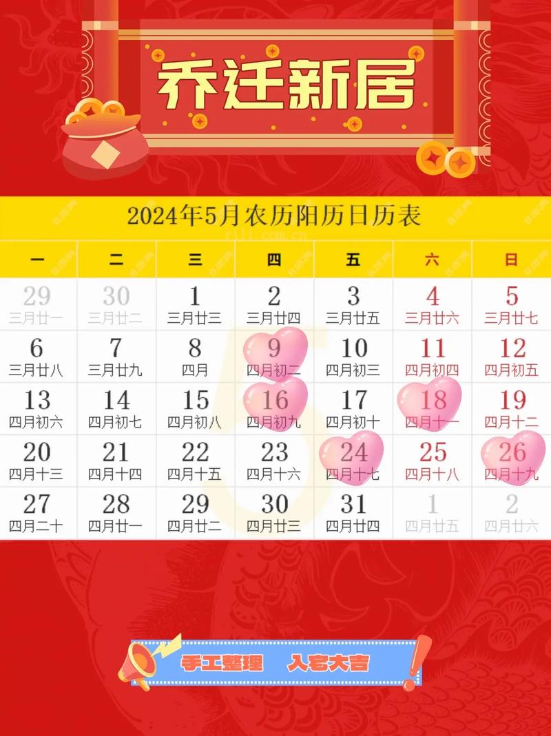選擇搬家和入宅的吉日是許多人在搬遷時考慮的重要因素,尤其是在中國傳統(tǒng)文化中。以下是關于2024年5月的搬家和入宅吉日的詳細信息。