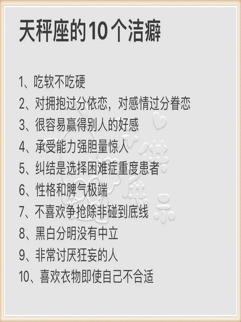 天秤座在情感上是否真的有很深的潔癖是一個復(fù)雜的問題。根據(jù)多項星座研究和分析,天秤座在情感上確實有一定的潔癖傾向,但這種潔癖更多是針對自身,而不是戀人。
