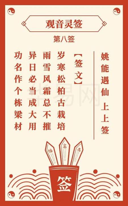 觀音靈簽八簽的簽文雖然看似簡(jiǎn)單,但寓意深刻。它告訴人們,人生難免會(huì)遇到困難和挫折,但只要能夠堅(jiān)持不懈,努力克服,終將迎來(lái)轉(zhuǎn)機(jī)。