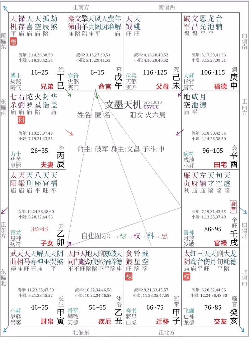 遷移宮會合魁鉞、昌曲:代表命主在外容易遇到貴人,得到幫助和提攜。也暗示著命主在外具有較強(qiáng)的學(xué)習(xí)能力和適應(yīng)能力,能夠快速融入新環(huán)境。