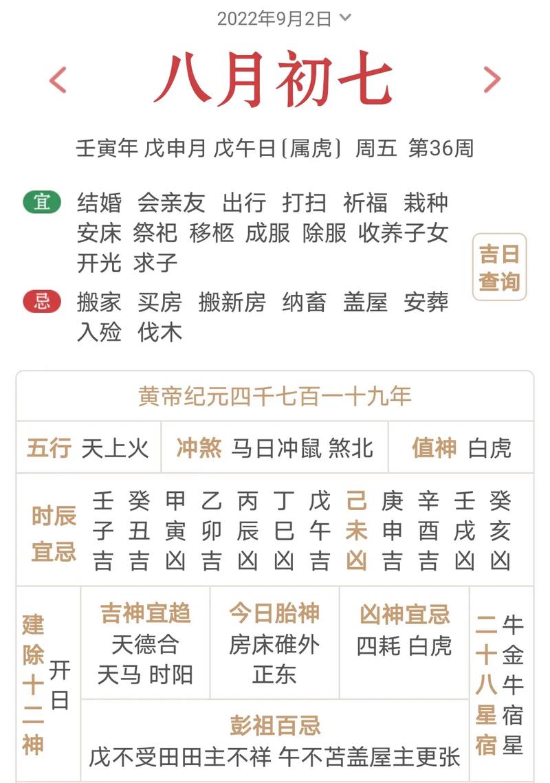 吉日:八月初七,婚禮、旅游、動(dòng)土、開業(yè)等喜事宜人。