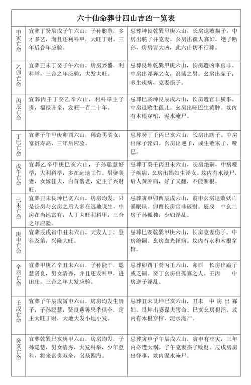 60甲子仙命葬后吉兇斷 六十甲子亡命葬法