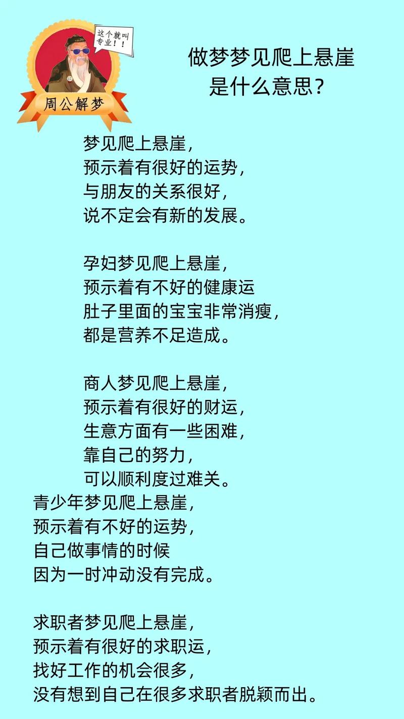 夢想爬懸崖是一個多方面的夢,可以有多種意義。它可能代表困難、恐懼、精神成長、克服逆境或?qū)で笾С?。在解釋夢想時,考慮夢想的具體細節(jié)和個人生活背景是很重要的。