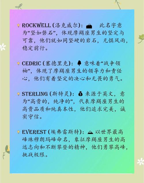 摩羯座男孩以其堅(jiān)韌、自律和雄心壯志而聞名。選擇一個(gè)與這些特征相呼應(yīng)的英文名是非常重要的。以下是為您的摩羯座小王子量身定制的精選英文名: