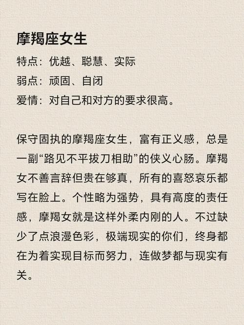 摩羯座女性堅韌不拔,目標(biāo)明確,值得信賴。憑借我們的毅力、勤奮和奉獻精神,我們可以實現(xiàn)我們的夢想,為世界做出有意義的貢獻。我們可能嚴(yán)謹(jǐn)務(wù)實,但我們也充滿熱情和抱負(fù)。