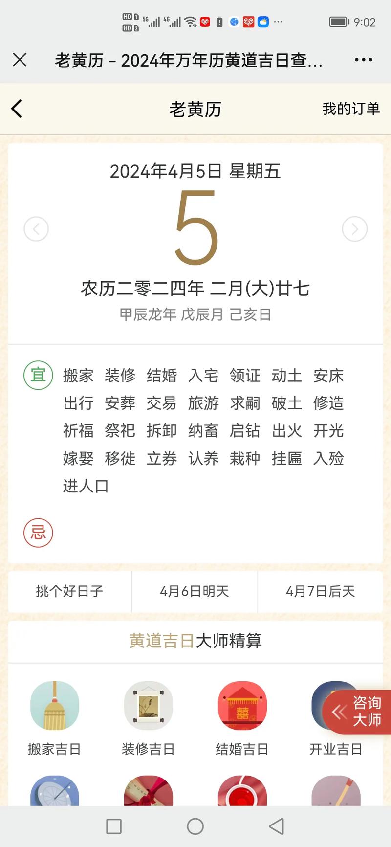 吉日應(yīng)選擇天干地支相結(jié)合的日子,如甲子、乙丑、丙寅、丁毛等。這幾天財運(yùn)亨通,家運(yùn)昌隆。
