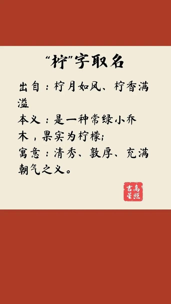 “檸檬”的名字意味著嬰兒有一種清新精致的氣質(zhì),獨立的個性,不跟隨別人。檸檬的酸甜苦辣象征著嬰兒對生活的積極樂觀態(tài)度。即使他遇到挫折,他也有勇氣面對它,從中學(xué)習(xí)經(jīng)驗,成長為一個更堅強的人。檸檬富含維生素C,也象征著健康和活力,意味著嬰兒健康和精力充沛。