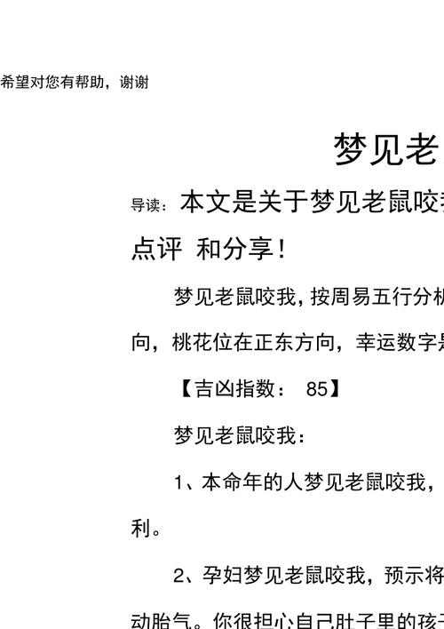 老鼠咬人無血:吉兆,預(yù)示著化險(xiǎn)為夷或得到幫助。