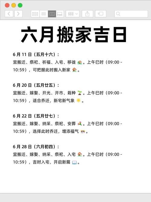 對于那些渴望搬進新房子的人來說,在2017年6月選擇一個吉祥的日子是至關(guān)重要的。無論是從風(fēng)水的角度還是從心理的角度來看,一個吉祥的日子都能帶來良好的跡象和積極的心理暗示。