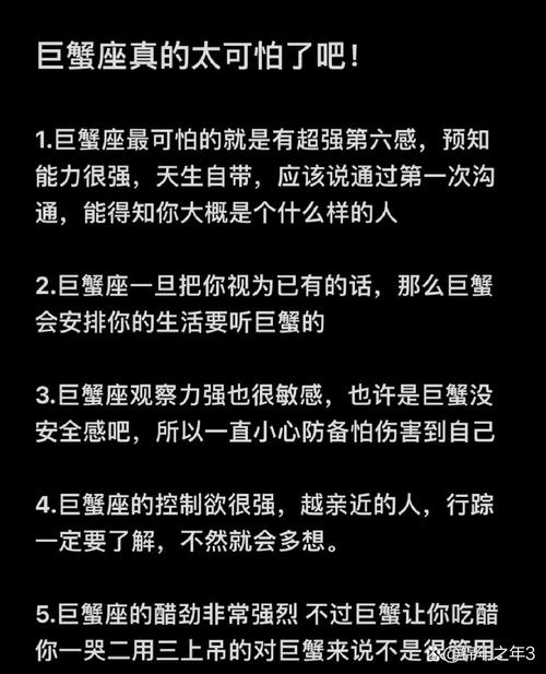 巨蟹座是受月亮影響的水象星座,情緒豐富,容易受到影響。他們非常重視人際關(guān)系,渴望親密和安全。然而,這種情感特征并不等同于自我控制能力差。