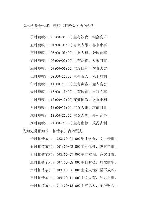 4. 打噴嚏:打噴嚏的次數(shù)和時(shí)辰可以用來(lái)占卜吉兇,如每天打噴嚏的次數(shù)與即將發(fā)生的事情有關(guān)。