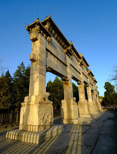 石牌坊的風(fēng)水作用與墓地的位置密切相關(guān)。十三陵的位置非常注重風(fēng)水。陵區(qū)位于昌平區(qū)龍脈上方,環(huán)山環(huán)繞,環(huán)境優(yōu)美。龍脈是風(fēng)水學(xué)中的一個重要概念,是指山脈或河流的方向。好的龍脈可以帶來吉祥的精神,有利于陵墓的風(fēng)水。