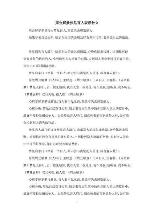在周公的夢(mèng)中,盲人駕駛是一個(gè)深刻的形象。不同的場(chǎng)景和細(xì)節(jié)給了夢(mèng)不同的解釋。