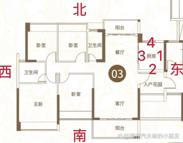 西南方向:增強(qiáng)家庭和諧西南方位是增強(qiáng)家庭和諧與感情的關(guān)鍵區(qū)域。廚房布局在西南方向,有助于增進(jìn)家庭成員之間的感情,提升家庭的凝聚力和幸福感。