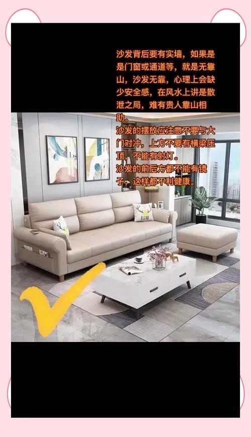 沙發(fā)應(yīng)擺放在客廳的中心位置,避免靠墻或靠窗。這樣可以使沙發(fā)周圍有足夠的空間,有利于氣流流通,避免煞氣聚集。