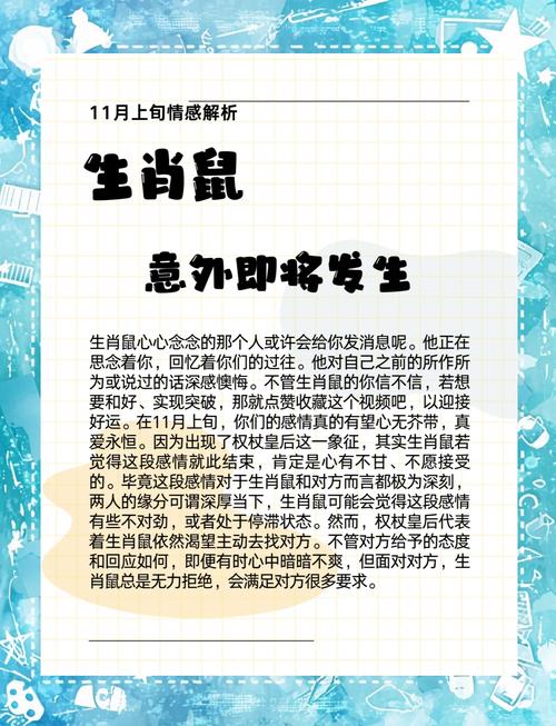 在感情方面,生肖鼠通常很專一,對感情十分忠誠。他們渴望得到伴侶的呵護和關愛,也愿意為伴侶付出自己的全部。雖然有時會表現(xiàn)得比較敏感和任性,但這正是他們可愛的一面。