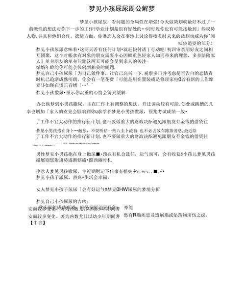 夢見兒子拉尿,在周公解夢中具有多種寓意。