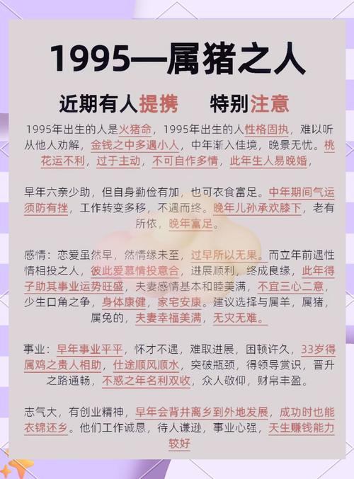 作為95年屬豬的人,了解自己的禁忌和好運(yùn),有助于趨吉避兇,增加運(yùn)勢(shì)。