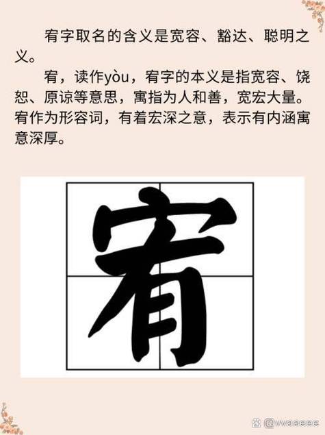 宥字是一個吉祥的字,寓意著寬容、仁慈、寬恕。在姓名學中,宥字被認為是一個大吉之字,可以帶來好運。宥字可以用來取名,也可以用來作為座右銘。