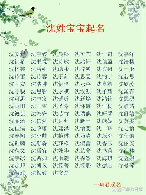 名字的構(gòu)成與寓意在為沈姓男孩取名時(shí),建議從以下幾個(gè)方面入手: