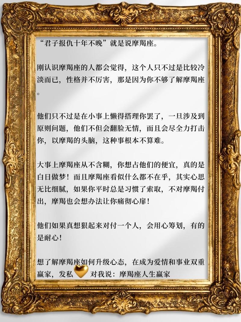 摩羯座以冷靜、理智著稱,但當他們的底線被觸及時,他們也會展現(xiàn)出強大的報復之心。摩羯座的報復往往深思熟慮、有條不紊,讓人防不勝防。