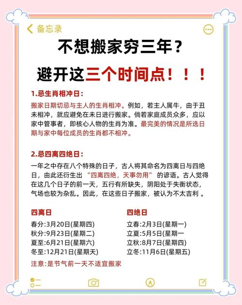 擇吉日時(shí),應(yīng)考慮黃歷上的宜忌,選擇宜搬家、入宅的日期,避開(kāi)沖煞、破日、敗日等不吉利的日子。