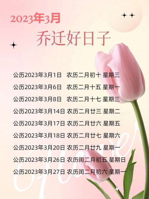 在2017年農(nóng)歷三月中,有多個(gè)吉日供人們選擇。例如,農(nóng)歷三月初三、初五、初六、十五、十六、二十三等,都是適合婚嫁、開業(yè)、喬遷等喜事的吉日。其中,農(nóng)歷三月初六更是難得的天德貴人日,被認(rèn)為是諸事皆宜的大吉日。
