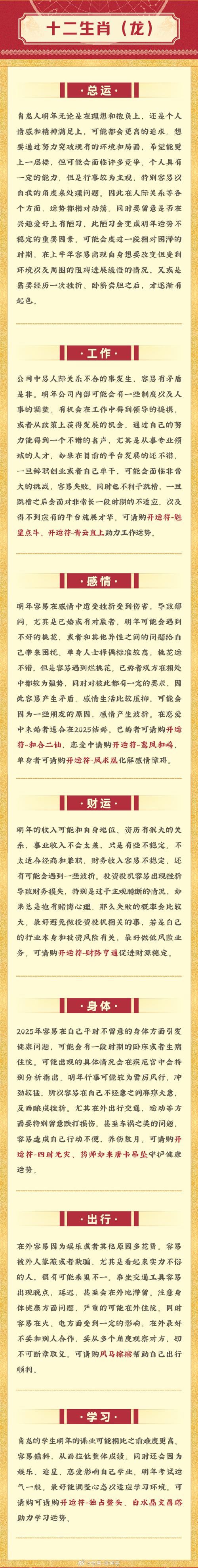 健康運(yùn)勢:龍精虎猛,身康體健。