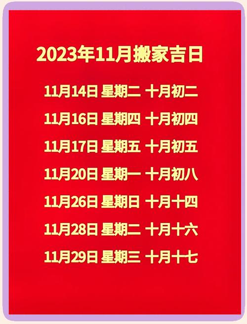 對于屬狗的人來說,農(nóng)歷11月是一個充滿機(jī)遇和變革的月份,尤其是在搬家方面,選擇合適的吉日可以帶來好運(yùn)和積極的改變。以下是農(nóng)歷11月屬狗搬家吉日的一些建議: